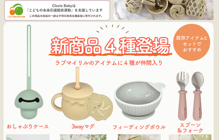 クロビスベビーのプライベートブランド「ラブマイリル」から、『フィーディングボウル』『3wayマグ』『スプーン&フォーク』『おしゃぶりケース』の4種が発売いたしました。