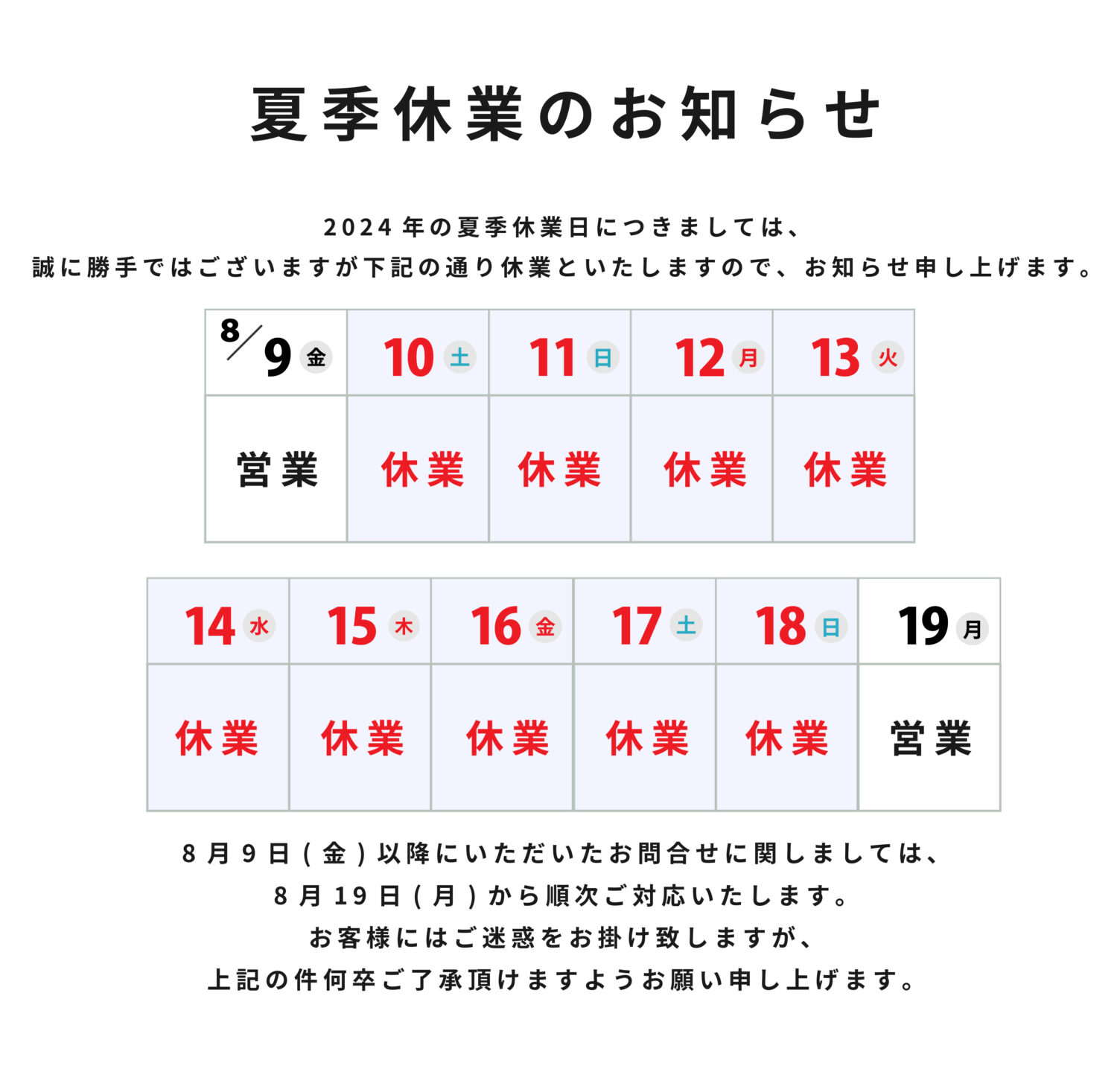 休業期間中にいただいたお問合せについては、8月19日(月)以降に順次回答させていただきます。