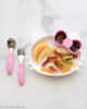 シリコンの持ち手が滑りにくく持ちやすい、フォークとスプーンのセット。