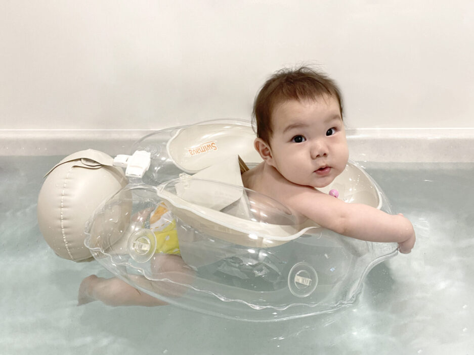 あおむけ、うつぶせ、2つの使い方で楽しめる。 お日さま対策はこれでOK! お外で思いっきり遊べるUPF50+の別売りサンシェードを取付ければ真夏の屋外水遊びにも大活躍。