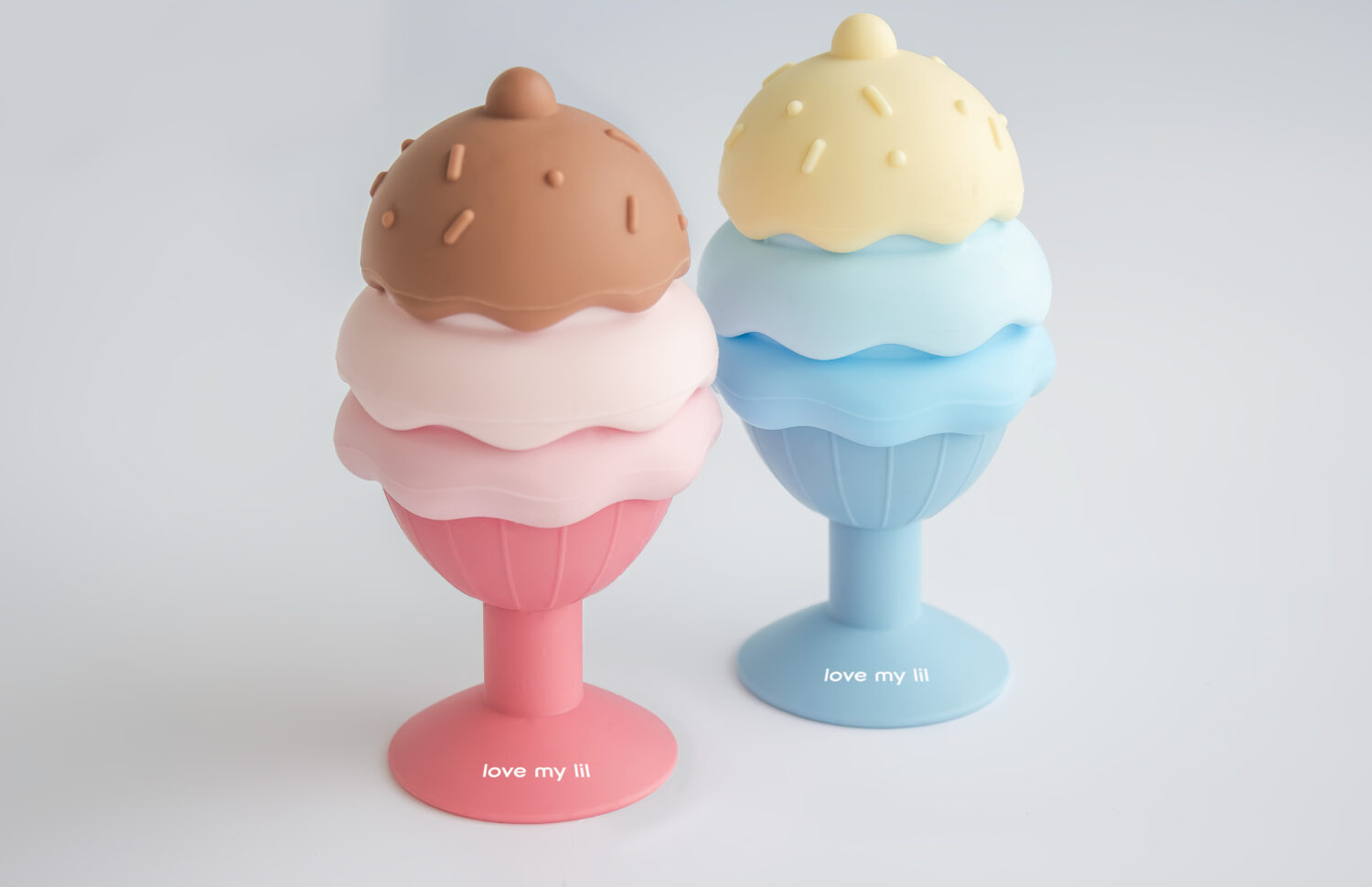 「今日はどんなアイスにする?」 重ねて遊んで、水をためて流して、お風呂でもお部屋でも大活躍。 Love my lil(ラブマイリル)の「あいす屋さん」は、カラフルでかわいいアイス型のベビートイ。 シンプルな遊びの中たくさんの発見があり、はじめての知育トイとしてもおすすめです。