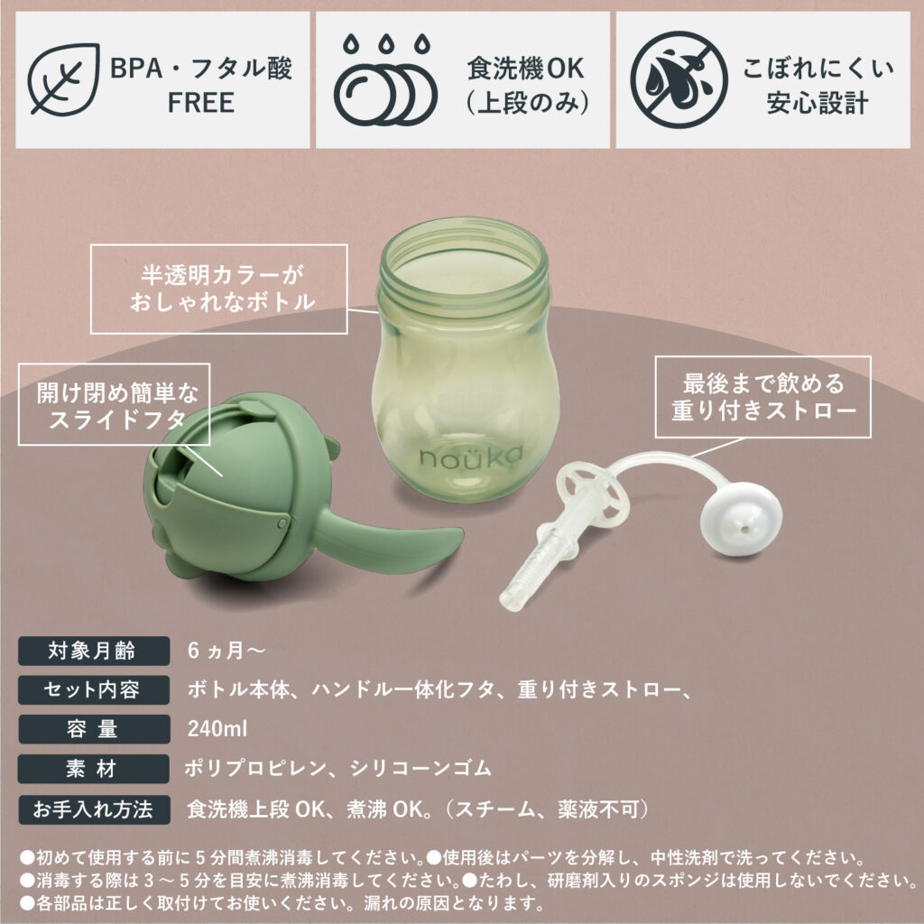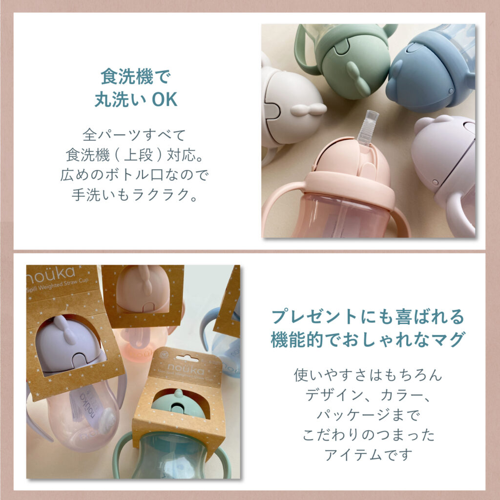| 商品説明 | 最後まで飲める&どんな角度でもOK、重り付きストロー。 カナダ発のブランド、nouka(ノーカ)が目指すのは、 ●使用時期目安:離乳食が進み、吸う力が発達してきたら。手で支える動作の練習としても良いタイミング。 |